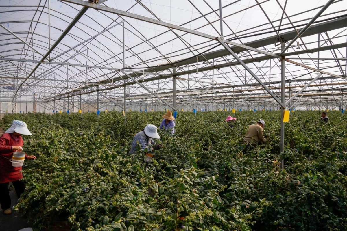 ▲當地群眾正在藍莓大棚里采摘(資料圖片)