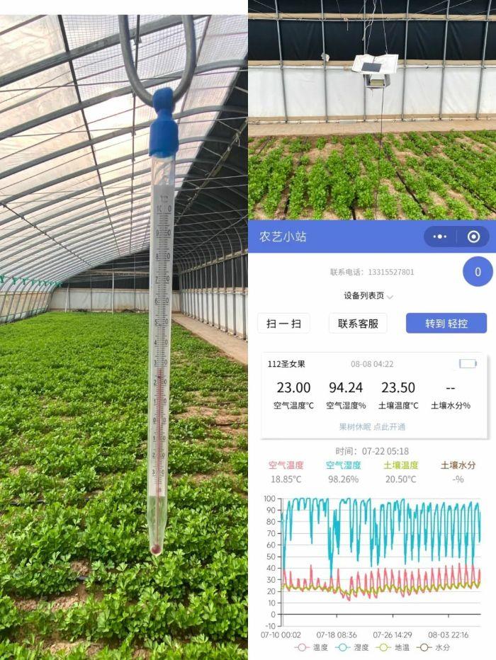 在農業溫室大棚內部仔細觀察可以發現,農業數字化應用成果頗具亮點。200多座大棚內全部應用了溫度和濕度實時監控裝置,溫度數據會實時傳送到手機軟件上,幫助工作人員分析溫室大棚里的環境條件。同時,大棚內地面敷設有自動灑水裝置,當大棚內溫度升高,自動灑水裝置將啟動灑水,既可以進行降溫,又可以進行農作物灌溉。大棚外的遮陽保溫篷布則通過定時控制裝置進行升起與降落,白天時全部敞開,到了夜晚就會自動關合,確保了溫室大棚內農作物在白天受到充足的日照,在夜間還可以保持恒溫狀態。