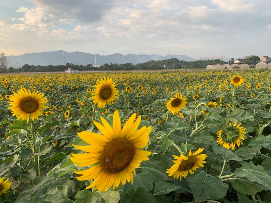 當(dāng)一朵朵向日葵展開笑顏,這里便成了花的海洋。這里是污水廠區(qū)內(nèi)的試驗田,“污泥”變沃土的科研項目正在進(jìn)行,每年6100噸的營養(yǎng)土經(jīng)過無害化處理后還田利用,培育田地的瓜果蔬菜。
