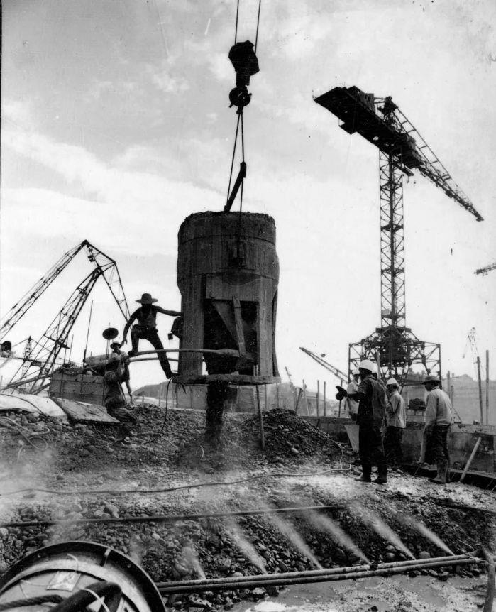 ▲1981年大江船閘閘首第一方混凝土澆筑。攝影:李佐高