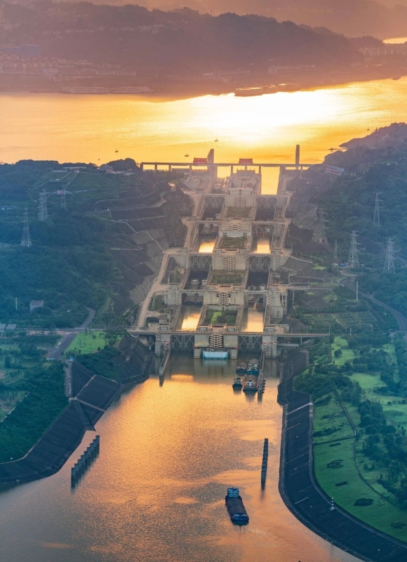 ▲三峽雙線五級(jí)船閘 攝影:湯偉